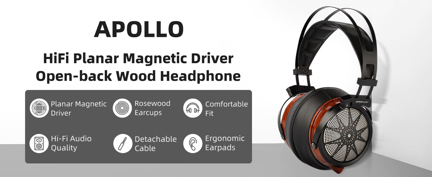 Open-back Hifi Planar Magnetic Over-ear Wood headphone - Apollo