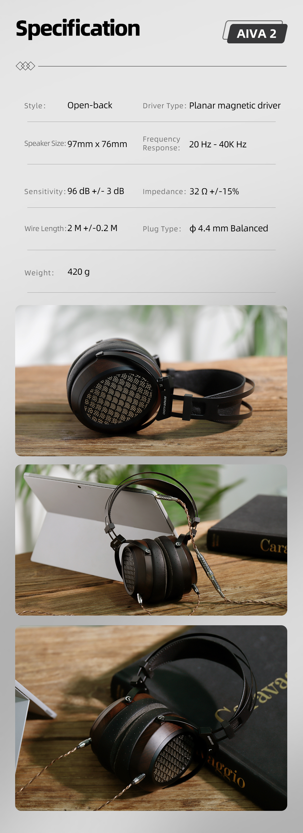 Open-back Hifi Planar Magnetic Driver Over-ear Wood headphone - Aiva 2